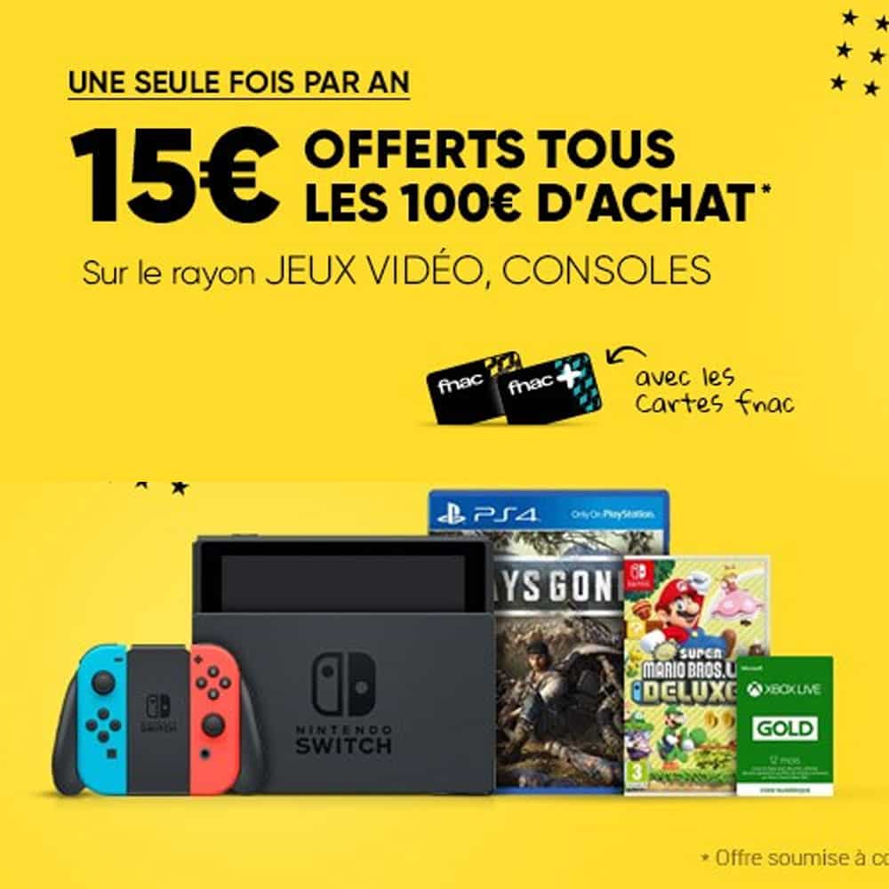 Alors que les précommandes pour la PS5 étaient lancées ce jeudi dernier, j’ai complètement zappé de vous partager le bon plan pour les adhérents Fnac ! En effet, le marchand offre durant tout le weekend 15€ de CC tous les 100€ d’achats !