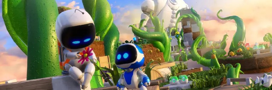 La bande-son électronique se synchronise aux actions : percussions douces dans les jardins spatiaux, rythmes plus soutenus dans les usines robotisées, créant une continuité musicale sans rupture. Les effets audio, spatialisés en 3D, signalent rouages lointains ou vols de drones, aidant à anticiper dangers et secrets. Visuellement, les couleurs vives côtoient des reflets réalistes ; gouttelettes d’eau et particules lumineuses enrichissent l’atmosphère sans nuire à la clarté des plateformes. Cet ensemble offre une aventure accessible, rythmée et résolument optimiste, idéale pour découvrir l’ergonomie de la console tout en profitant d’un level-design ingénieux.