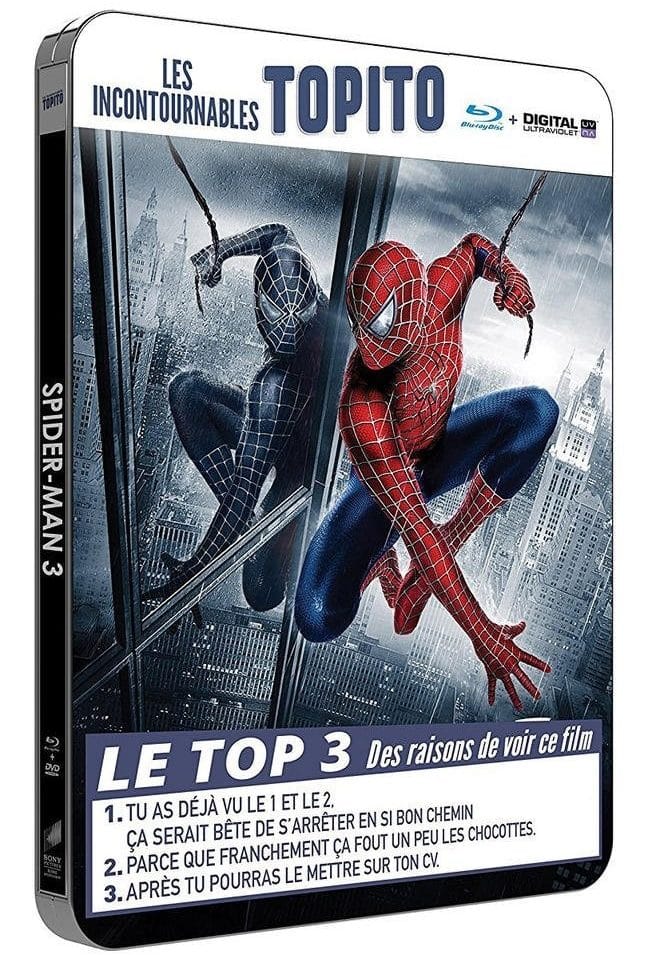 A noter qu’ils sont presque tous à 14.99€ (ou alors légèrement moins cher), donc cela revient à 2 Blu-ray Steelbook pour 14.99€ la plupart du temps. Parmi les titres proposés nous avons du Spider-Man 1, 2 ou 3, SOS Fantômes, Street Fighter (avec Van Damme), Elysium, Hancock, etc… Bref de quoi vous faire une petite collection de Blu-ray Steelbook pour pas trop cher ^^ Source : SD