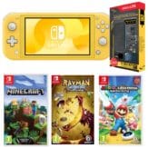 Console Nintendo Switch Lite + Minecraft + Rayman Legends Definitive + Mario & Les Lapins Crétins + pack 6 accessoires à 259.99€