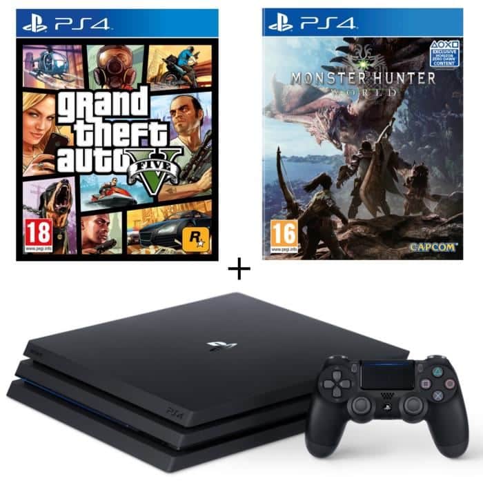 Console PS4 Pro + GTA V + Monster Hunter World à 339.99€