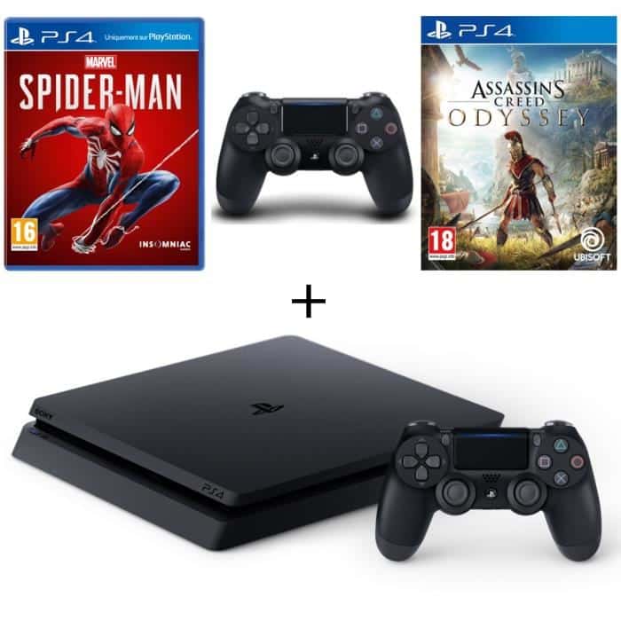 Console PS4 Slim 1To + Spider-Man + Assassin’s Creed Odyssey + 2ème manette à 329.99€
