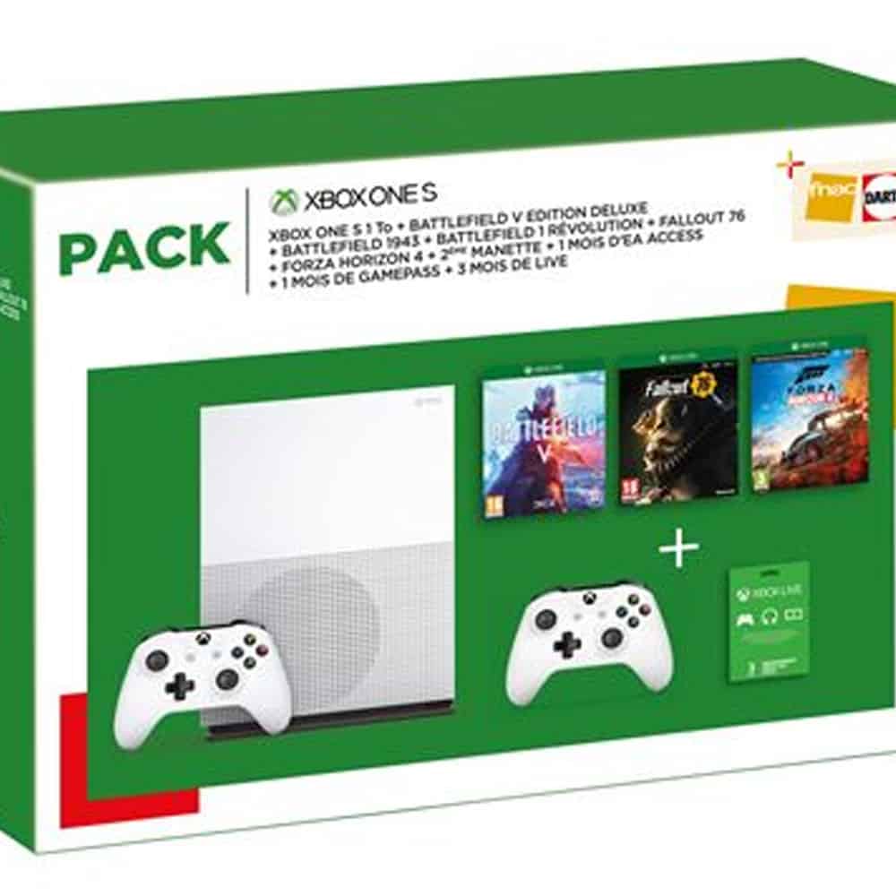 Console Xbox One S 1To + Battlefield V + Battlefield 1 Revolution + Battlefield 1943 + Fallout 76 + Forza Horizon 4 + 2ème manette + 3 mois de Gold à 249.99€