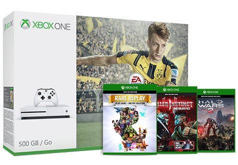 Console Xbox One S + FIFA 17 + Halo Wars 2 (ou Forza Horizon 3) + Rare Replay + Killer Instinct à 254.34€