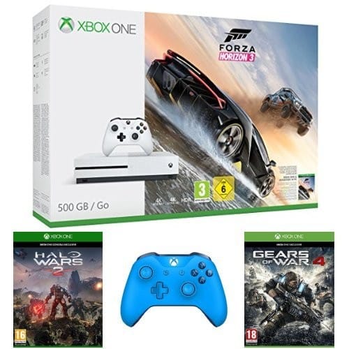 Console Xbox One S + Forza Horizon 3 + Halo Wars 2 + Gears of War 4 + 2ème manette bleue à 329€
