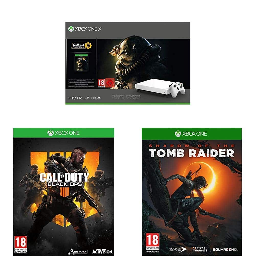 Console Xbox One X blanche + Fallout 76 + Shadow of the Tomb Raider + Call of Duty Black Ops IIII + Gears of War 4 à 439€