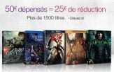 Bonne promo sympa sur les Blu-Ray et DVD chez Amazon. Pour 50€ d’achats parmi là sélection du bon plan, 25€ de remise immédiate vous sont offertes avec le code promo 25EUROSOFF. Offre valable jusqu’au 11 octobre 2015