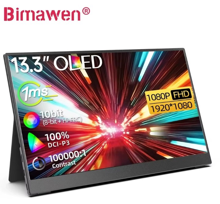 Le Bimawen OLED 13,3 pouces est un moniteur portable pensé pour les joueurs et créateurs qui recherchent un second écran compact sans compromis sur la fidélité d’image. Son châssis en alliage d’aluminium, léger et résistant, intègre un panneau OLED Full HD capable d’afficher des noirs véritables et des couleurs d’une profondeur rarement vue sur ce segment. Grâce à des bordures très fines et à un poids contenu, l’écran se glisse facilement dans un sac aux côtés d’un ordinateur portable, d’une console ou d’un mini-PC, offrant ainsi une solution d’affichage nomade pour le jeu, la création de contenu ou le travail mobile.