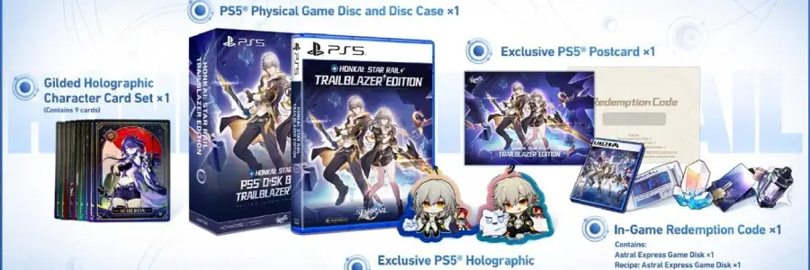 La Trailblazer Edition comprend le jeu sur disque avec jaquette, un ensemble de cartes de personnages à finition holographique, deux porte-clés chibi exclusifs et une carte postale illustrée. Ces objets mettent en avant l’identité visuelle, des silhouettes aux armes iconiques, et trouvent naturellement leur place aux côtés d’une bibliothèque de figurines ou d’artbooks. L’ensemble offre un point d’entrée tangible pour découvrir la traversée interstellaire, tout en valorisant les mécaniques de combat, l’exploration et la richesse du casting qui font la singularité de Honkai: Star Rail.