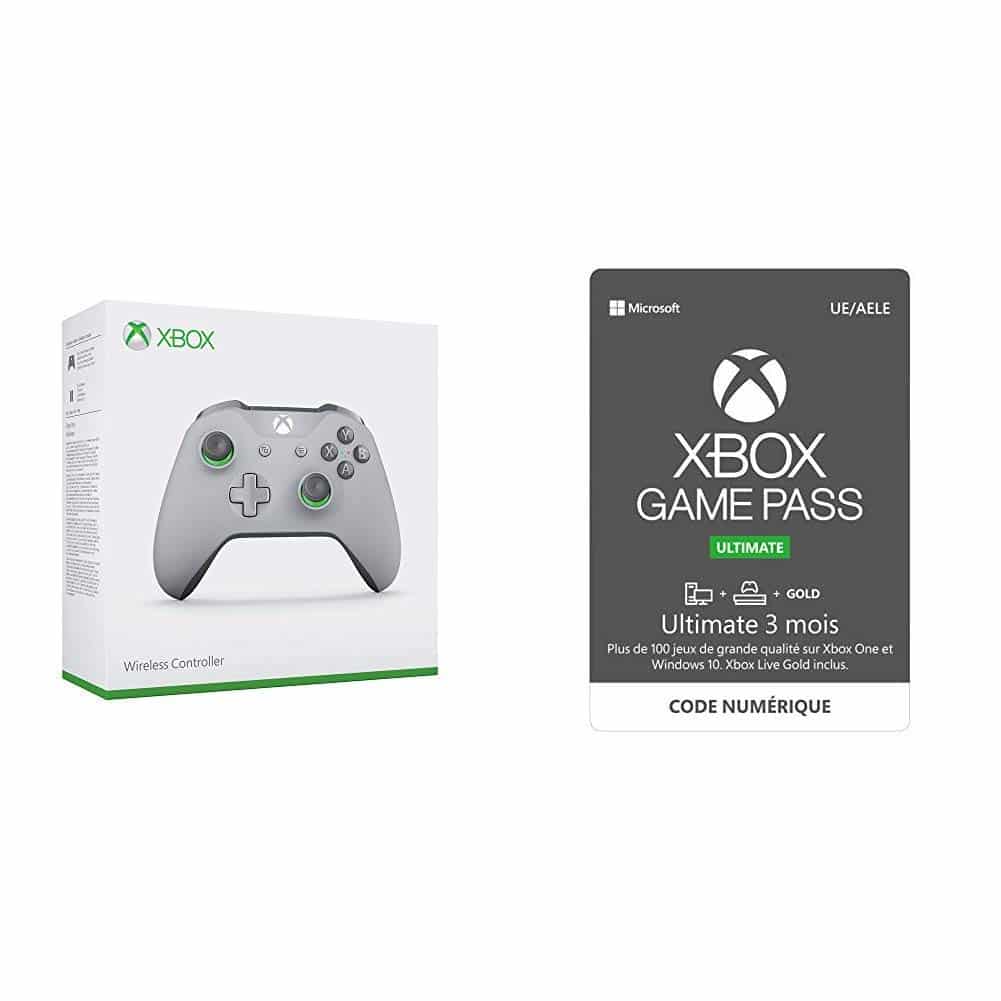 L’offre : Un très bon prix chez Amazon qui nous propose un pack comportant une manette Xbox One gris/vert accompagnée d’un Gamepass Ultimate 3 mois au tarif de 43.48€ !