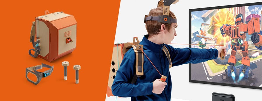 Un second pack sera disponible au lancement du Nintendo Labo : le Robot Kit. Avec celui-ci, et l’aide de vos Joy-Con, vous pourrez vous transformer en robot et le contrôler en temps réel à l’écran ! Dans ce pack, un seul accessoire est fourni, mais il est beaucoup plus évolué que ceux du multi-kit. En effet, nous avons droit à des ficelles, des sangles ainsi que des œillets. Ce Robot Kit, quant à lui, est annoncé à 79.99€.