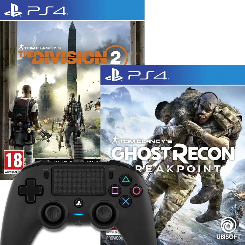 L’offre : Une excellente offre du côté de chez Auchan qui nous propose plusieurs packs contenant The Division 2 + Ghost Recon Breakpoint sur PS4 accompagnés d’un accessoire au choix :