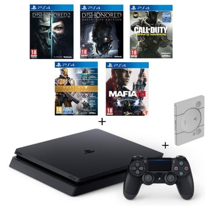 PS4 Slim + Dishonored 1 & 2 + COD Infinite Warfare + Destiny la Collection + Mafia 3 + steelbook Anniversary à 349.99€
