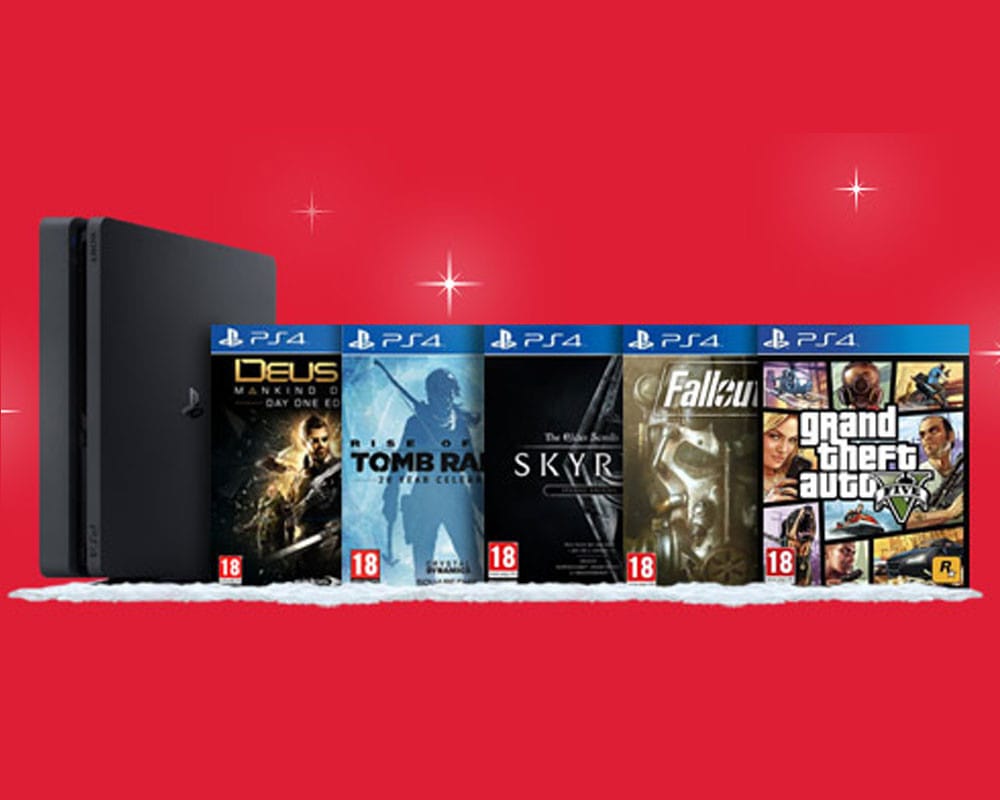 PS4 Slim + GTA 5 + Fallout 4 + Deus Ex Mankind Divided + Skyrim + Rise of Tomb Raider + 50€ offerts aux adhérents à 369.90€