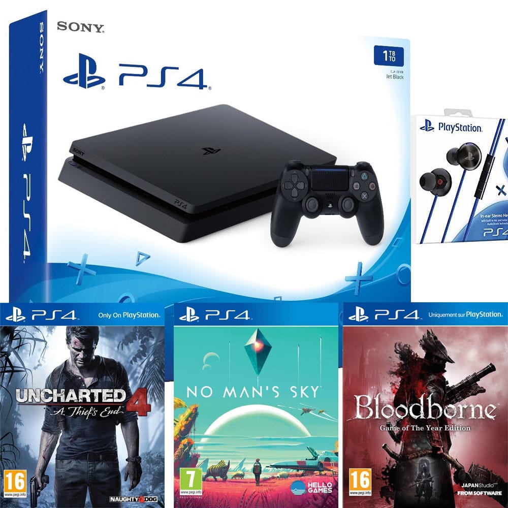 Console PS4 Slim 1 To + Uncharted 4 + No Man’s Sky + Bloodborne GOTY + casque intra à 319.99€