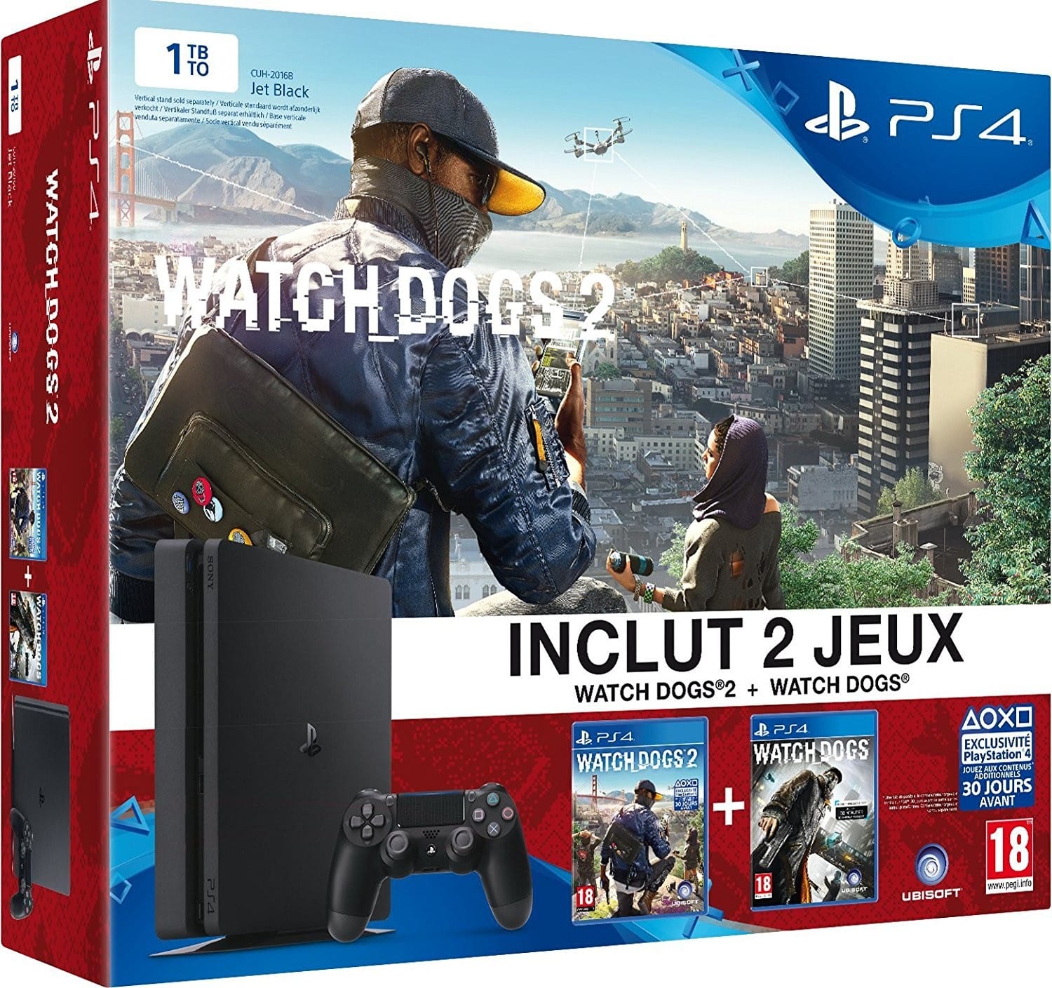 Console PS4 Slim 1To + Uncharted 4 + Watch Dogs 2 à 299.99€