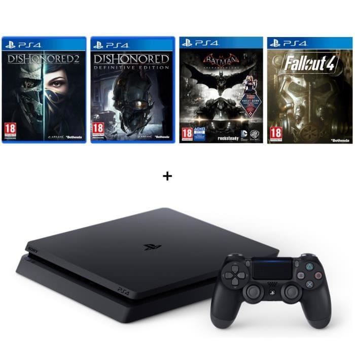 Console PS4 Slim + Dishonored 1 et 2 + Batman Arkham Knight + Fallout 4 à 319.99€