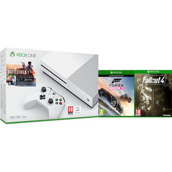 Console Xbox One S + Battlefield 1 + Forza Horizon 3 + Fallout 4 à 287.49€