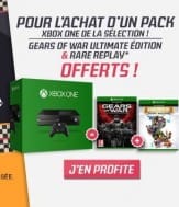 Pour l’achat d’un des pack console Xbox One de la sélection les jeux Gears of War Ultimate et Rare Replay sont offerts (en version dématérialisée).