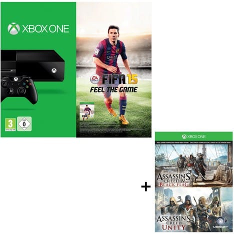 Console Xbox One avec 3 jeux (FIFA 15, Assassin’s Creed 4 et Unity) à 399€ @ Auchan.fr