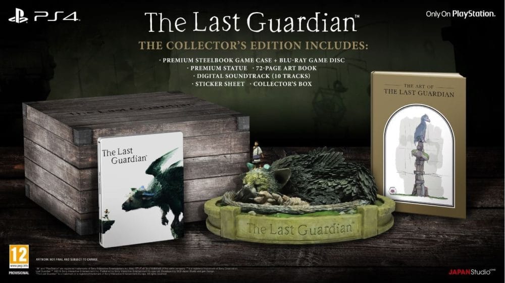 Cette édition collector de The Last Guardian contient en plus du jeu, une magnifique statuette, un steelbook, un artbook ainsi qu’un boitier collector pour mettre tout cela dedans ^^ Bien entendu le jeu est en version boite.