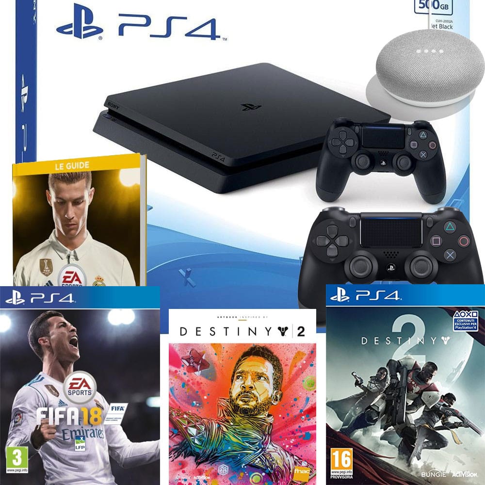 - Le pack PS4 Slim avec FIFA 18, la seconde manette et le guide