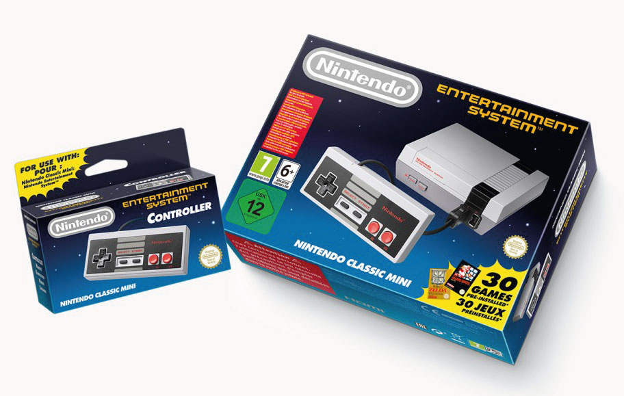 Première console officielle de Nintendo vous permettant de (re)découvrir vos jeux vidéo rétros, la mini-NES est prévue pour novembre 2016 avec 30 jeux directement inclus dans la console. Celle-ci se nomme mini car la console a été rétrécie à tel point qu’elle parait plus petite que la manette NES !