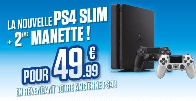 Bonjour à tous,Pour info jai bénéficié de loffre suivante en allant échanger ma ps4 Fat 500go -> pack ps4 Slim 1to avec horizon dawn une manette pour 99,99e donc encore plus intéressant que loffre de base !!!