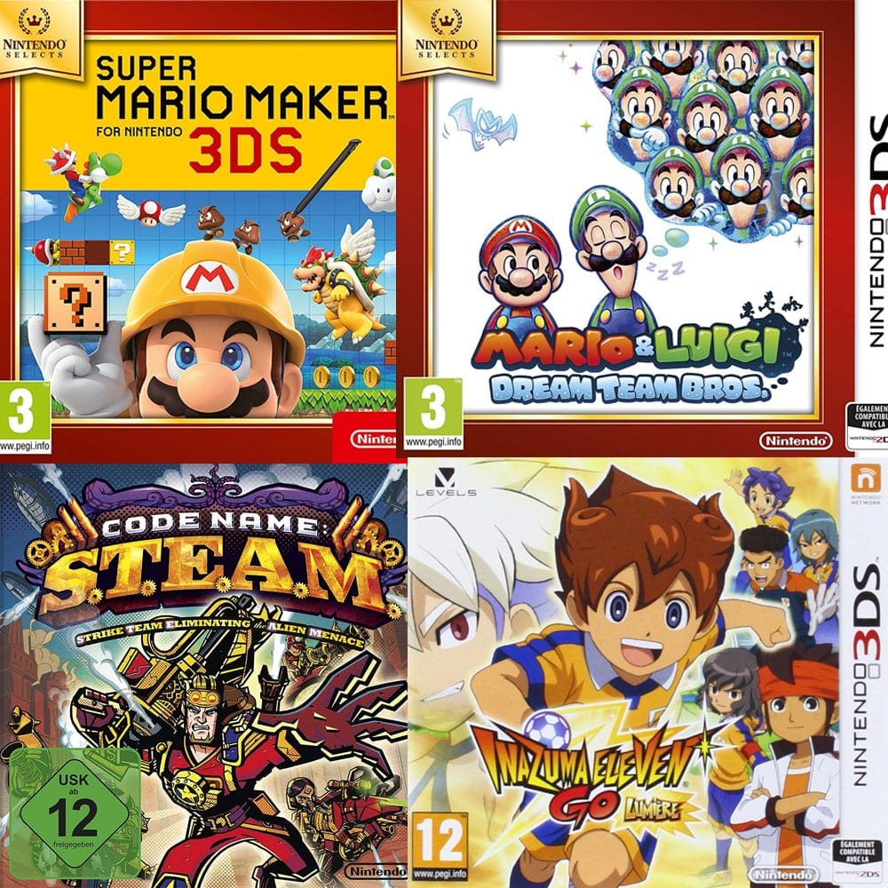Sélection de packs de 4 jeux Nintendo 3DS à partir de 29.99€ (ex : Super Mario Maker + Mario & Luigi Paper Jam + Code Name Steam + Inazuma Eleven Go Lumière)